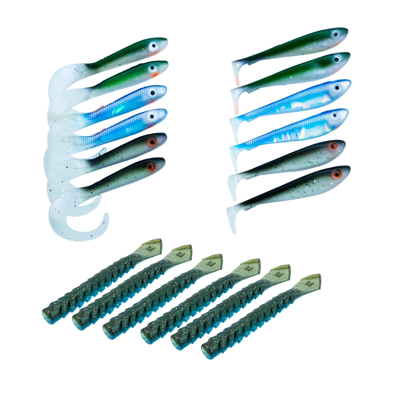 Svartzonker McRubber Shad 9cm Mix (6-pack)McRubber Shad 9 cm er en agn, der virkelig virker på både fodring og inaktive fisk.Super fin lille softbait, der bedst tackles med et jighoved med krog str. 4/0. Kommer i 6-pak.Svartzonker McRubber Tail 11cm Mix (6-pack)Svartzonker McRubber Tail 11 cm tiltrækker fisk til at bide og bevæger sig smukt i vandet selv ved lave hastigheder. Den nedadvendte hale får jiggen til at svømme vuggende og pulserende allerede på faldet.Har mange aborrer på samvittigheden og passer også godt, når du målretter fiskeri efter sandart. Halen trykker ikke så meget vand som en pagaj og er derfor særdeles velegnet, når aborren er skånsom eller kræsen.Rig den til med jig skull eller Carolina / texas stil, McRubber Tail leverer fisk uanset.Svartzonker Lady Dragonworm 11cm, 6,8g (6-pack)Lady Dragonworm – Slår til, når du mindst venter det. Den ormeformede krop med toogtyve modhager og diamantformet pagaj blinker hurtigt, når du fisker den nær bunden.Fungerer især godt i koldt vand, og selv de mest grumme fisk kan ikke modstå fristelsen til at tage en smag af denne agn.Ned and the creaturesEn familie af flydende “kreaturer” designet til Ned rig med fantastisk præsentation og vibrationer. også velegnet til Neko rig, Carolina rig, Texas rig, Wacky rig og traditionel jig. Lavet af flydende, blødt, holdbart, elastisk og miljøvenligt TPE-plast.FYI! Bland ikke disse agn med dine traditionelle jigs i din tacklebox.